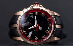 Again using Murano glass, the watch’s blood-red flange, and jet-black fissures give it a highly theatrical, glossy, and upscale appearance. The 18-carat pink gold knights are portrayed as being prepared to combat whatever the problem.